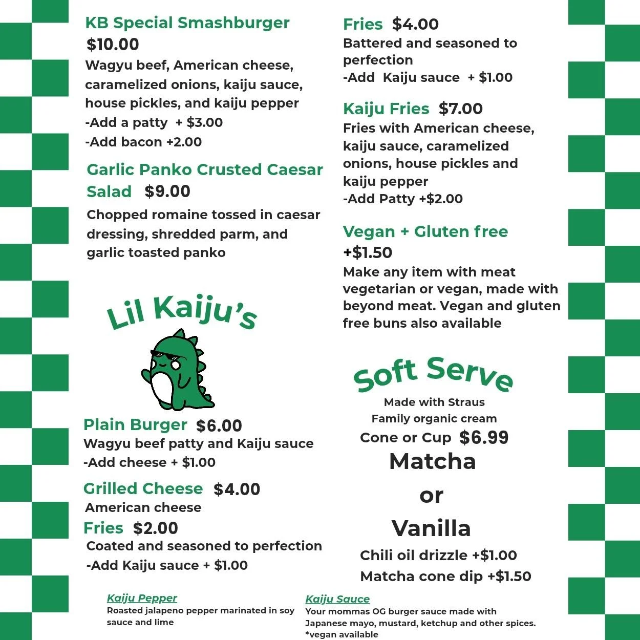 Specializing in wagyu smash burgers, matcha soft serve and more!